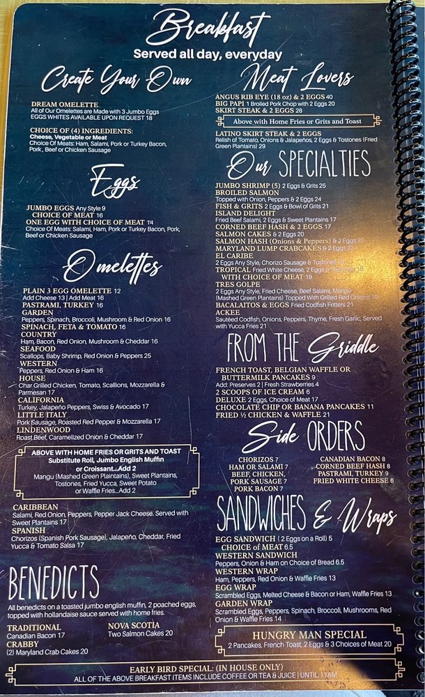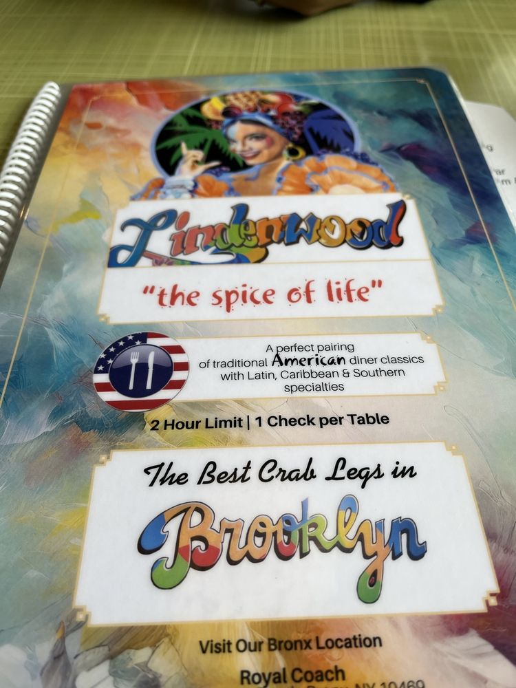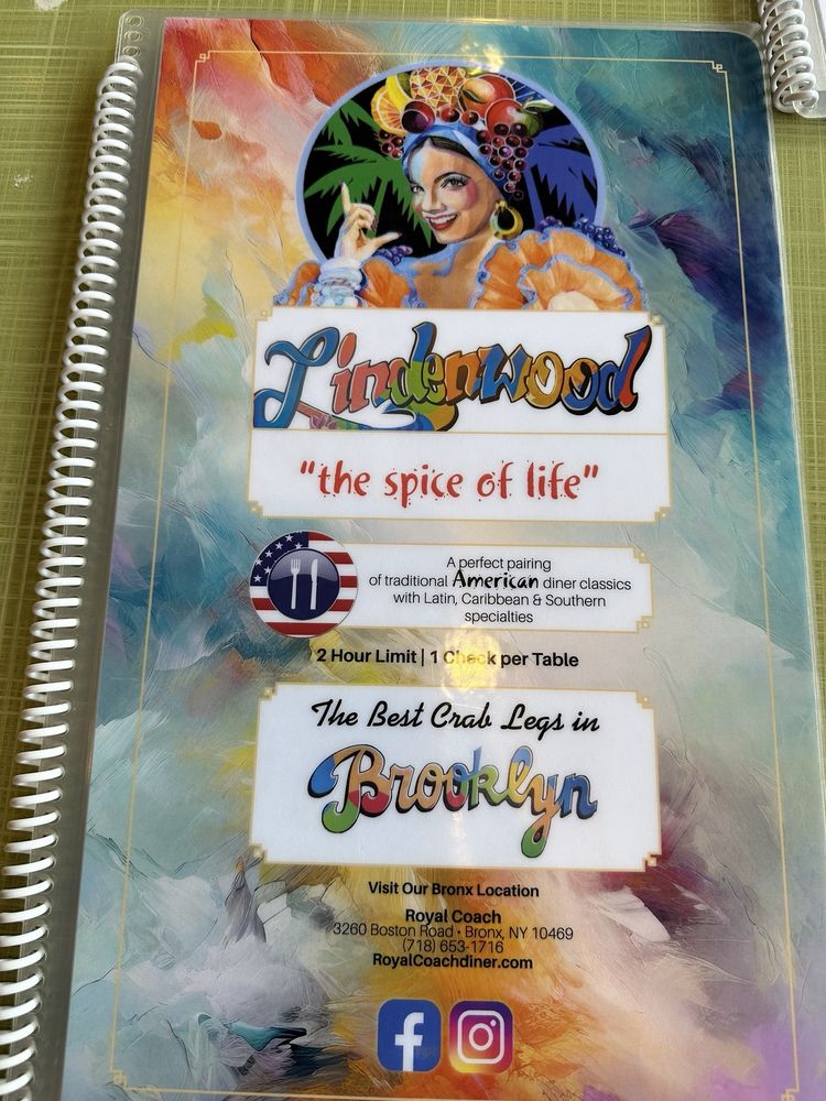 Introducing the menu at Lindenwood Diner & Restaurant, a bustling establishment located in Brooklyn, NY, offering a diverse selection of New American cuisine. With options for breakfast, brunch, lunch, dinner, and late-night dining, this diner caters to all tastes. The menu features delicious seafood dishes such as crab legs, baked clams, and crab cakes, as well as authentic Latin and Caribbean fare like ackee and saltfish. Customers rave about the attentive service, welcoming staff, and vibrant decor. From the freshly squeezed juices to the tasty desserts, each dish is seasoned to perfection. With vegan options available, Lindenwood Diner accommodates all dietary preferences. Whether enjoying Happy Hour specials at the full bar or gathering with friends for a group meal, this diner provides a memorable dining experience with every visit.